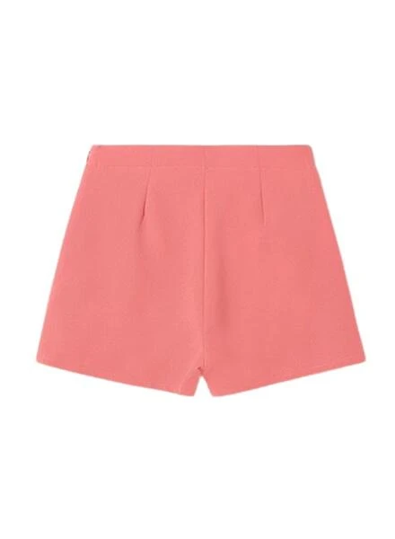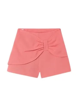 Jupe courte Mayoral. Couleur rose. Tissu crêpe. Détail de nœud à l’avant. Fermeture latérale à glissière. Taille haute.