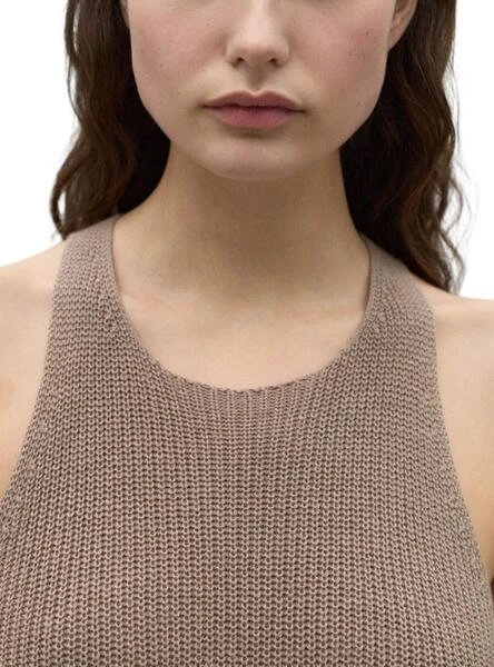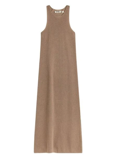 Robe Citrine Ecoalf marron. Coupe régulière. Col rond. Cardigan à demi-point. Ouvertures latérales. Végétalien. Le modèle mesure 182 cm et porte la taille S.