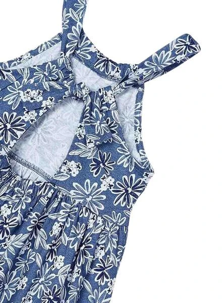 Robe Mayoral. Tissu en coton. Imprimé floral. Bretelles. Élastique à la taille. Ouverture dans le dos. Nœud à l’arrière.