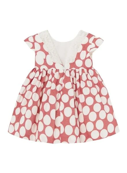 Robe Mayoral. Manches courtes. Fermeture à glissière invisible à l’arrière. Tissu jacquard. Ouverture dans le dos. Détail de dentelle. Imprimé à pois.