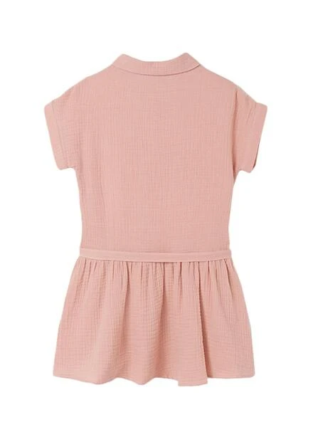 Robe Mayoral avec Sac à main. Couleur rose. Fermeture avant avec boutons. Tissu texturé. Manche courte. Col de chemise.