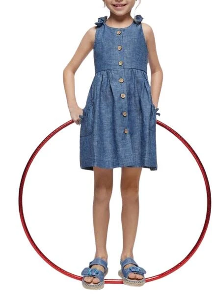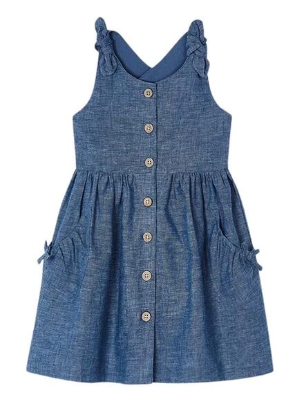 Robe Mayoral Boutons En Lin Bleu Pour Fille