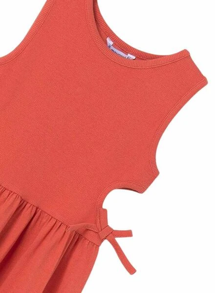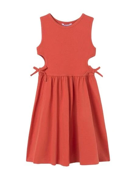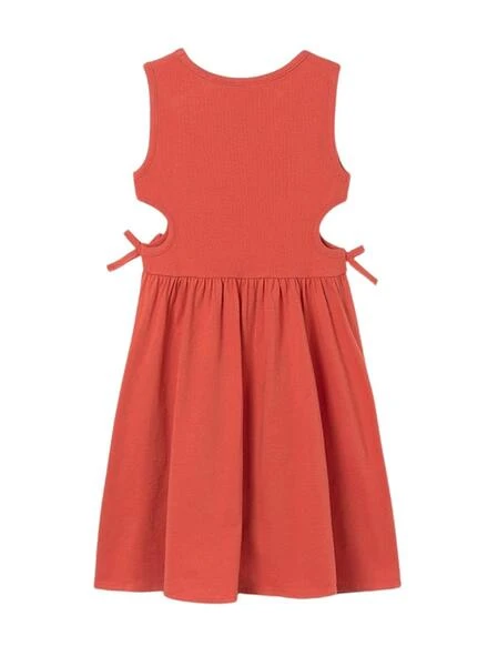 Robe Mayoral. Couleur orange. Tissu cĂŽtelĂ©. Col rond. Sans manches. DĂ©tails froncĂ©s. Ouvertures latĂ©rales. NĆuds Ă la taille. Jupe Ă©vasĂ©e.