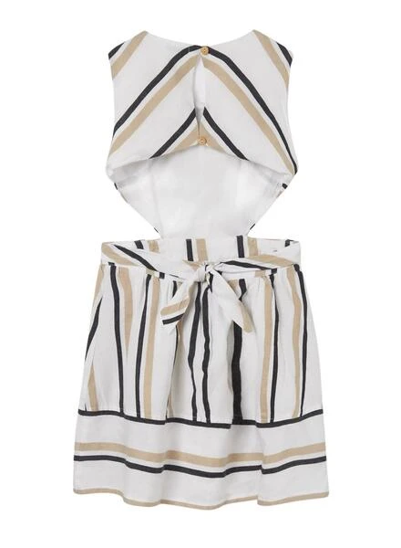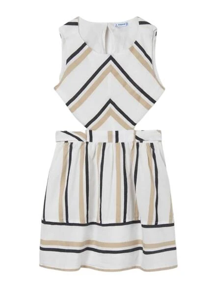 Robe sans manches pour fille. Col rond. Ouverture au dos avec fermeture à bouton. Arrière invisible Fermeture éclair. Éléments décoratifs : applique murale noeud. Printed géométrique.