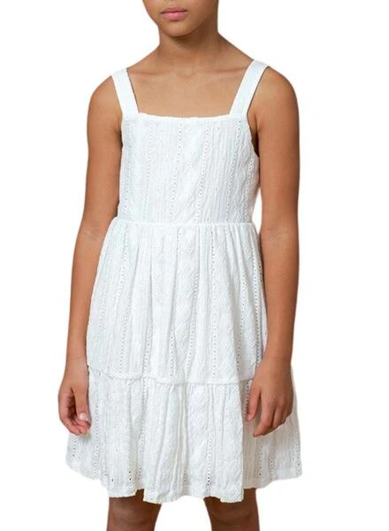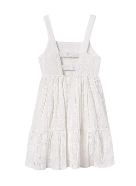 Robe Mayoral. Couleur blanche. Avec bretelles. Dos ouvert. Tissu en maille perforée.