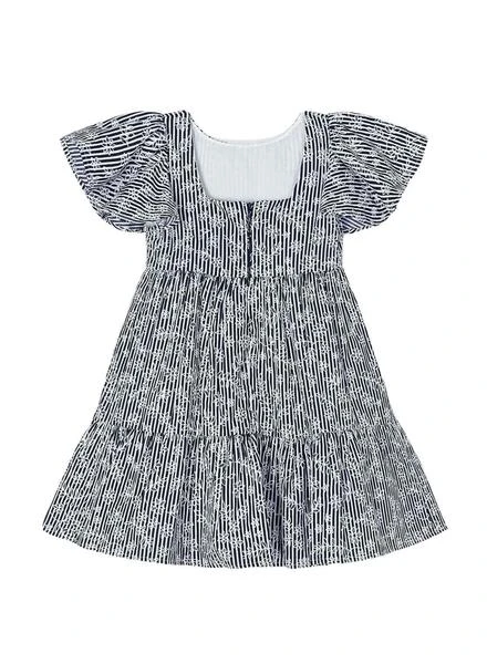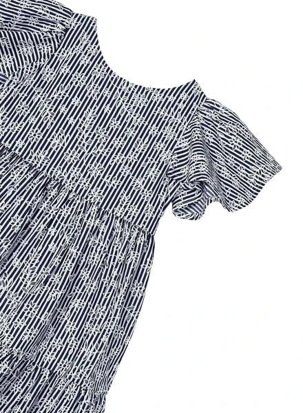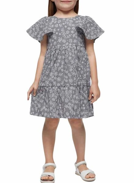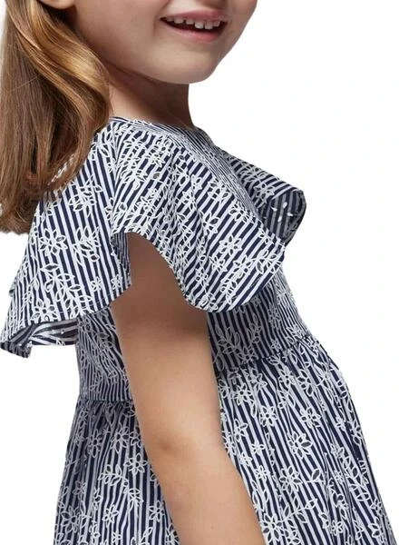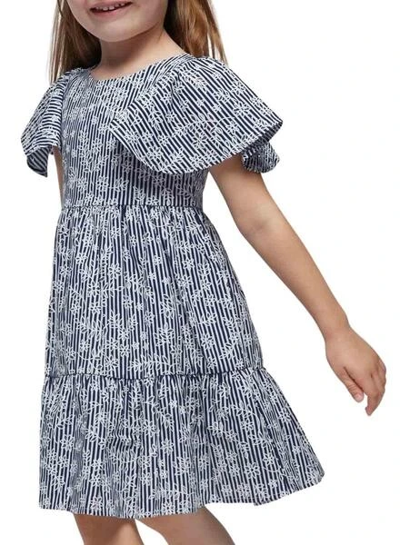 Robe Mayoral. Modèle en popeline. Couleur marine. Manches courtes avec volants. Imprimé sur toute la pièce. Col rond.
