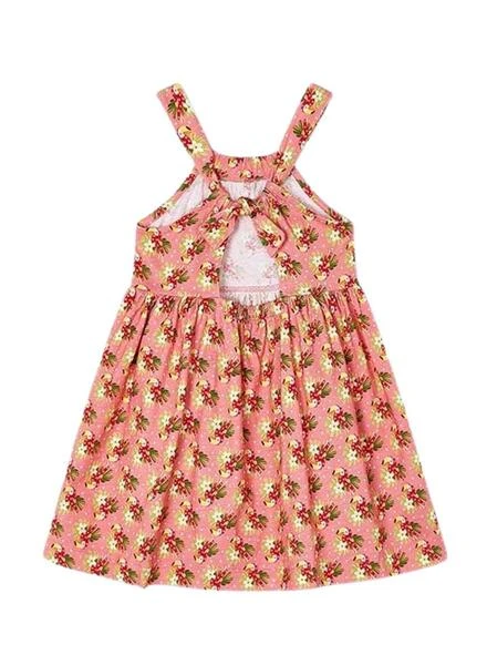 Robe Mayoral. Tissu en coton. Imprimé floral. Bretelles. Élastique à la taille. Ouverture dans le dos. Nœud à l’arrière.