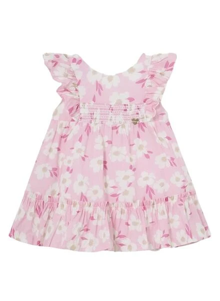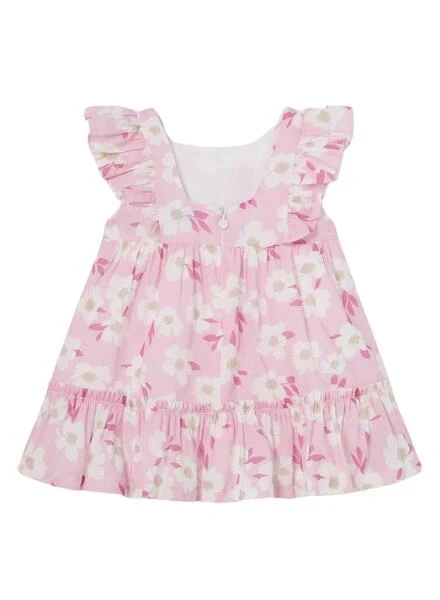 Robe Mayoral. Encolure ronde. Sans manches. Volant sur les épaules. Fermeture arrière avec fermeture éclair invisible. Dos en V. Imprimé floral. Bordure décorative. Ourlet à volants.
