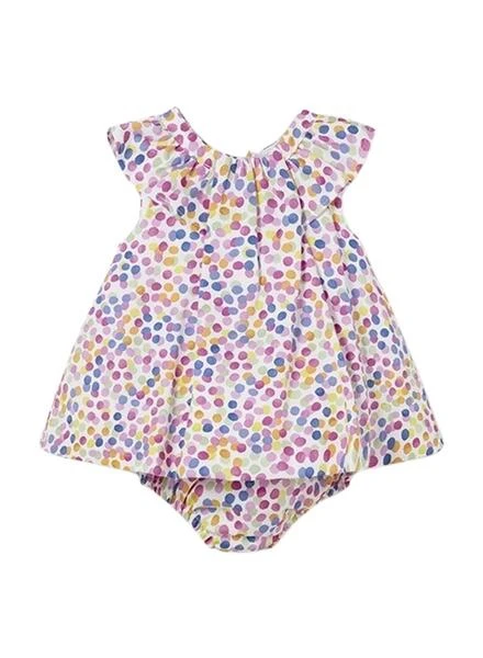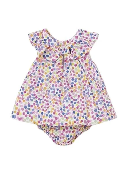 Robe Mayoral. Imprimé à pois multicolores. Col rond. Volants au col. Couvre-couche.