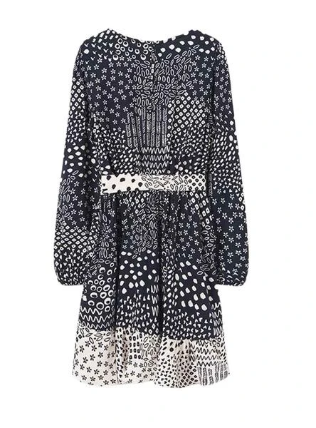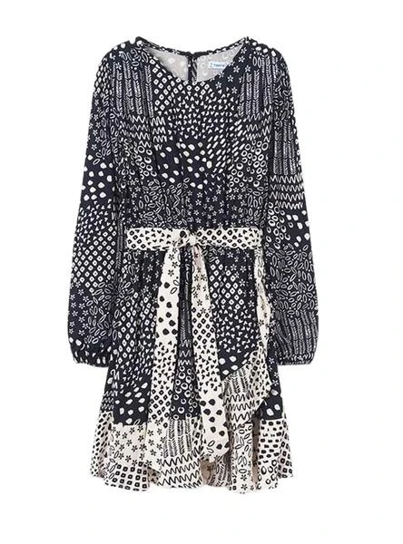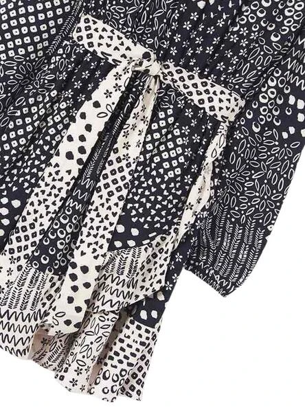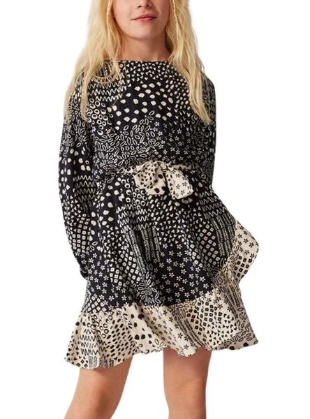 Robe Mayoral. Tissu avec imprimé intégral. Couleur noir et blanc. Ceinture inclus. Manche longue. Poignets élastiques. Avec volants. Fermeture au dos.
