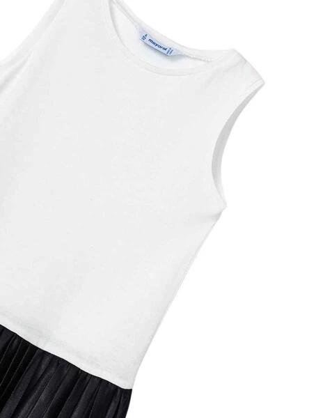 Robe Mayoral. 2piÚces. Pull avec imprimé « Love City » Col rond. Manche longue. Tissu doux. Similicuir plissé Jupe.