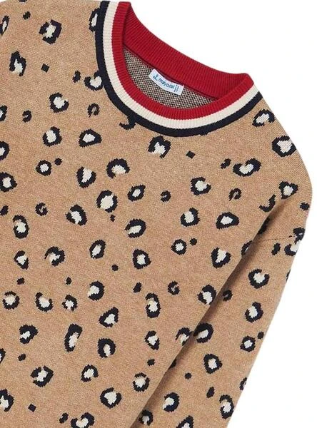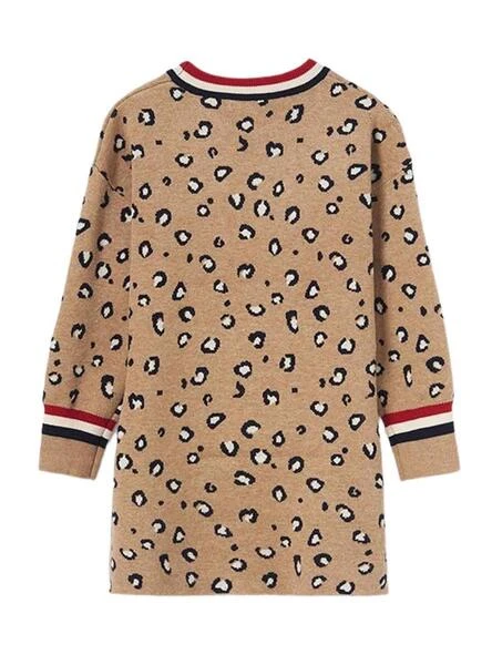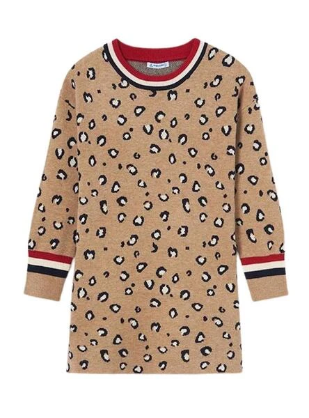 Robe Mayoral. Tissu tricoté. Léopard Printed. Col rond élastique. Poignets élastiques. Épaules tombées.