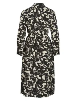 Robe Naf Naf. Couleur bleue. Format court. Manches longues. Col rond. Avec un nœud au cou. Volant en bas. Avec doublure intérieure. Imprimé boho. Le modèle porte la taille 36.