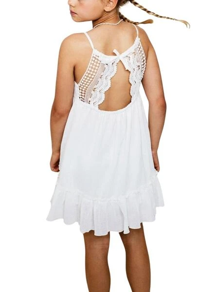 Robe Name It. Modèle Fimia. Couleur blanche. Sans manches. Avec bretelles. Détails en dentelle.