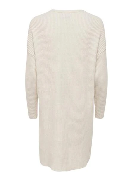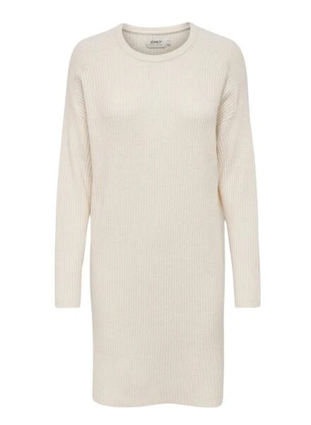 Robe Only. Tissu côtelé. Modèle FIA Katia. modèle mi-long Col rond. Manche longue. Couleur beige. Extrémités élastiques. Épaules régulières.
