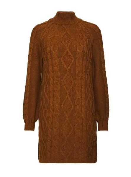 Robe Only. ModÚle Freya. Couleur marron. Long cou. Extrémités nervurées. Tissu tricoté tressé. Bien au-dessus du genou. Regular fit