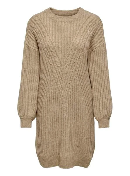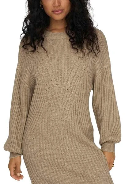 Robe Only. ModĂšle Lallie. Couleur Brun. Ăpaules tombĂ©es. Manche longue. Col rond. Tissu tricotĂ© extensible.