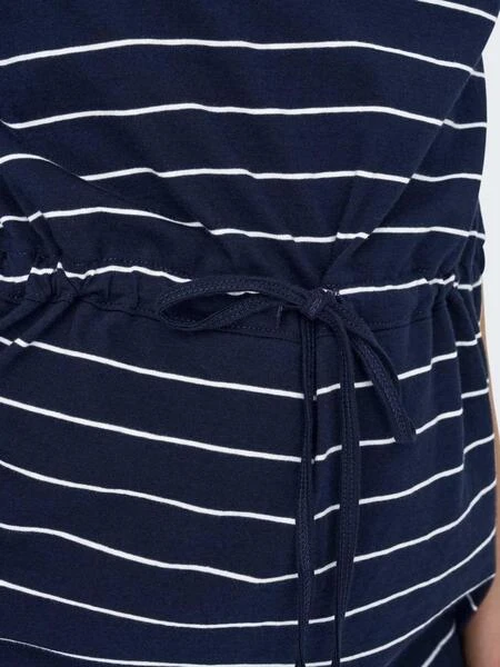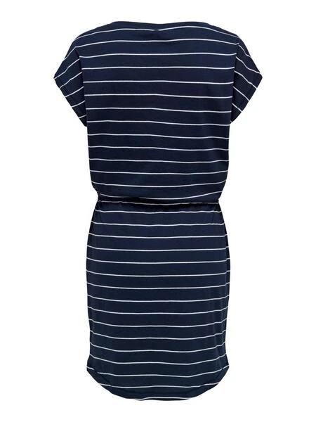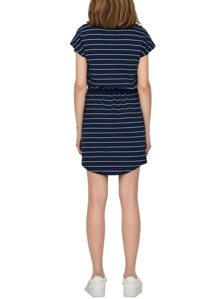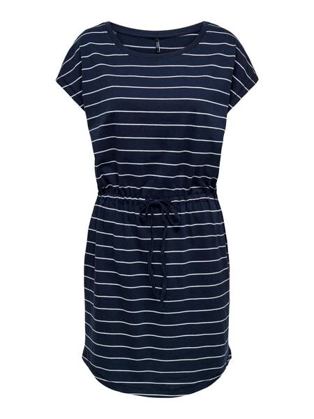 Robe Only. ModÚle May. Couleur marine. Manche court. Coupe ample. Conception selon Rayures. Cordsur le réglage de la taille. Tissu extensible.