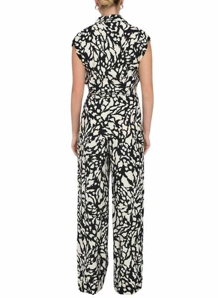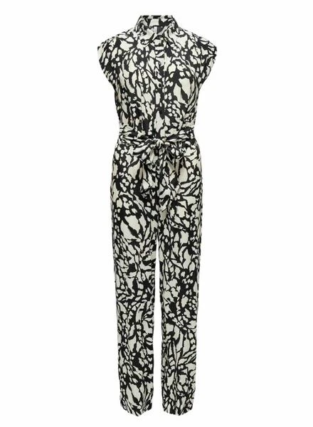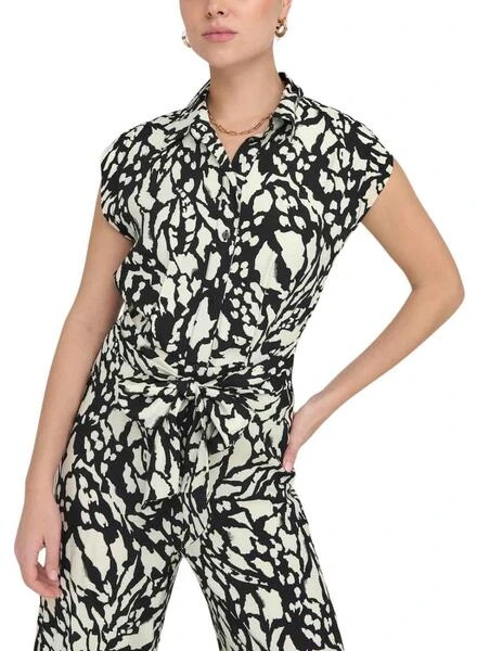 Robe Only. Modèle Naomi. Couleur noire. Noeud à la taille. Imprimé intégral. Fermeture boutonnée.