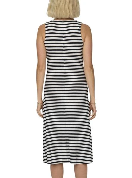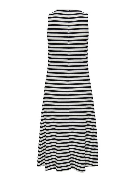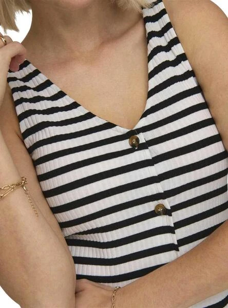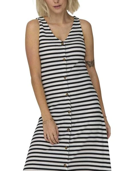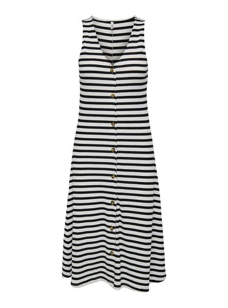 Robe Only. Modèle Nella Button. Rayures imprimées. Encolure en V. Boutons sur la poitrine. Sans manches. Tissu en polyester, viscose et élasthanne. Tissu élastique. Coupe au genou.