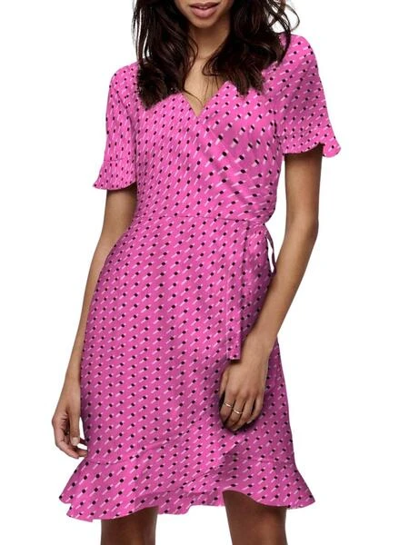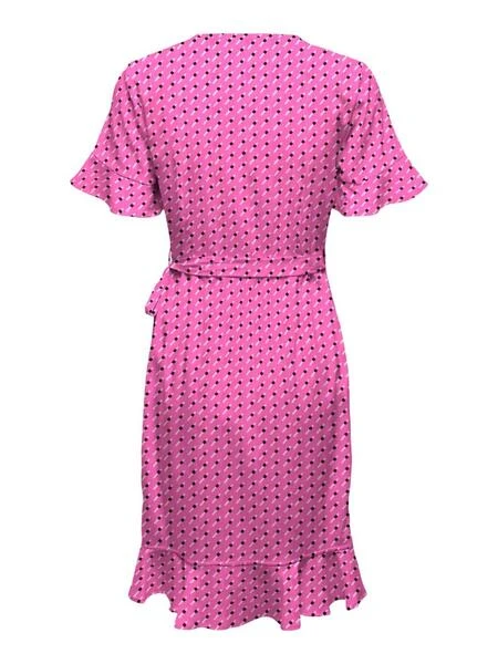 Robe Only. Modèle Olivier. Couleur rose. Conception croisée. Intégrale Printed. Manches court avec volantss.
