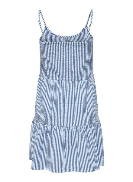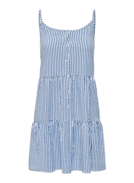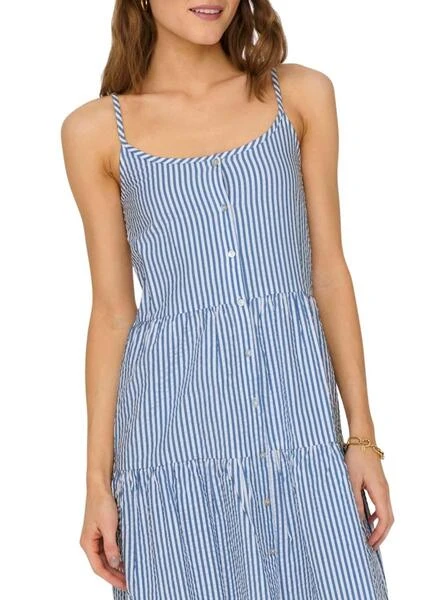 Robe Only. ModÚle Emily Strap. Couleur bleu. Avec bretelles. Fermeture boutonnée. Printed de Rayures.