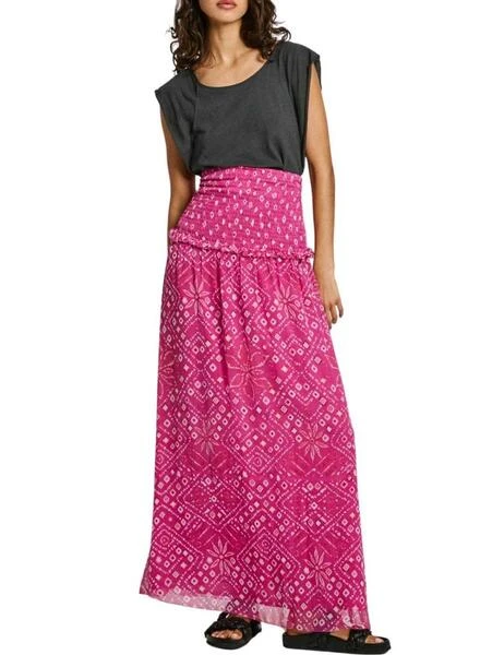 Robe Pepe Jeans. Modèle Daleysa. Couleur rose. Convertible en jupe. Imprimé ethnique.