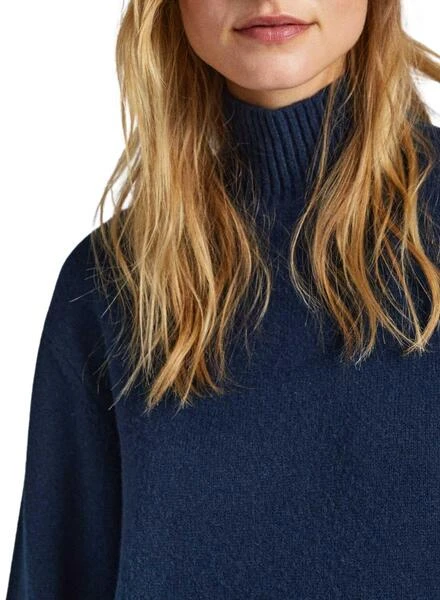 Robe Pepe Jeans. Tricoté. Couleur bleu. Tissu en laine. Fit en vrac. Long cou. Manche longue. Détail côtelé au col, aux poignets et à l’ourlet. Fabriqué à partir de pratiques et de matériaux durables. Le mannequin porte la taille S.