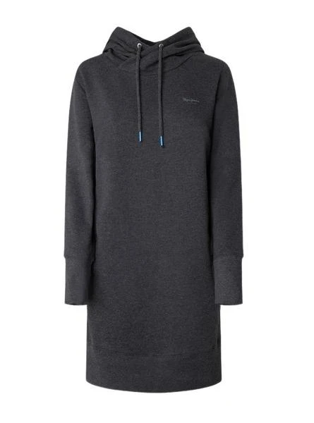 Robe Pepe Jeans. Modèle Gisela. Style sweat-shirt. Avec capuche fixe. Finitions côtelées. Couleur gris foncé. Cordons de serrage sur la capuche. Petit logo contrastant sur la poitrine.