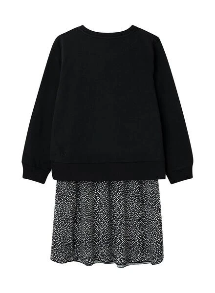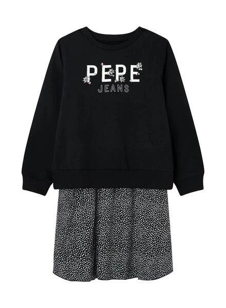 Robe Combiné Pepe Jeans. ModÚle Mélanie. Couleur noire. Sweat manches longues. Col rond. Logo blanc sur la poitrine. Jupe étoiles estampées.