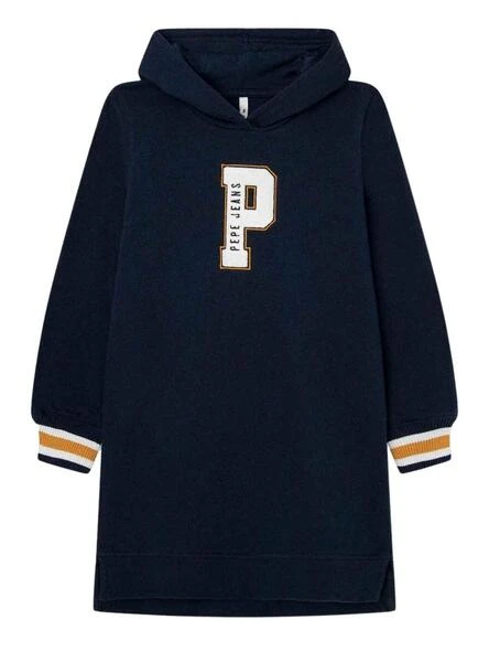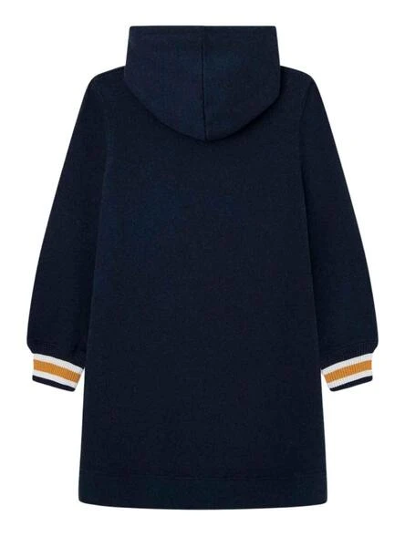 Robe Pepe Jeans. Modèle Salmay. Couleur bleu marine. Poignets élastiques. Logo sur la poitrine.