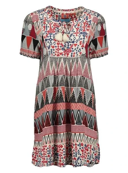 Robe Superdry. Modèle Notch. Couleur blanc. Col rond. Détail dentelle avec pompons. Manche court. Plusieurs tirages différents.
