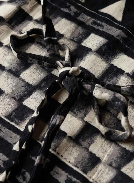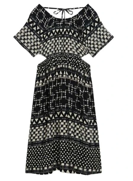 Robe Superdry. ModÚle Shirbori. Couleur noire. Col rond. Manches courtes. Découpe sur les cÎtés. Longueur midi. Tissu léger. Imprimé géométrique. Encolure dans le dos. Cordon ajustable avec embouts métalliques.