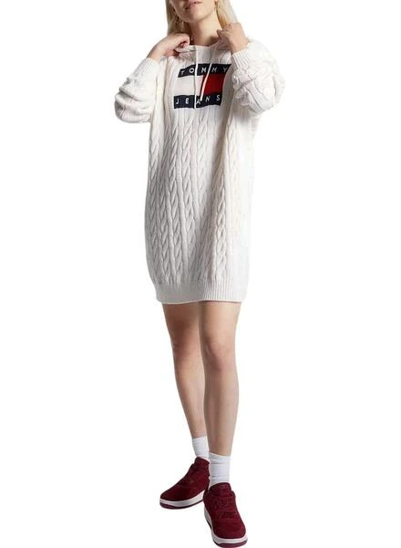Robe Tommy Jeans. Modèle de câble Flag. Couleur blanc. Avec capuche réglable avec cordons de serrage. Tissu en maille extensible. Détails distinctifs. Manche longue. Le mannequin porte une taille S.