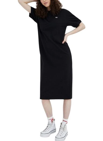 Robe Tommy Jeans. Couleur noire. ModĂšle Solid Strech. L’insigne de Tommy. Tapeta avec trois boutons. longueur midi Ouverture dans le bas du dos. Droit. Regular fit. Manche courte. Manche lĂ©gĂšrement bouffante. ExtrĂ©mitĂ©s cĂŽtelĂ©es. Poteau Robe.