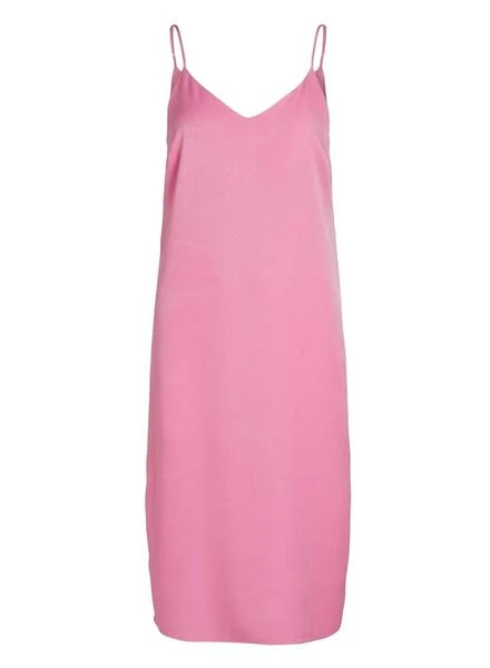 Robe Vila. Modèle Viamazed. Couleur rose. longueur midi Bretelles réglables. Décolleté en V sur la poitrine et dans le dos.