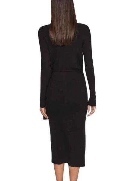Robe Vila. Modèle Vicomfy. Couleur noir. Encolure croisée. Manche longue. Conception côtelée. Tissu tricoté doux. Regular fit. Tissu côtelé extensible. Le mannequin porte la taille S.