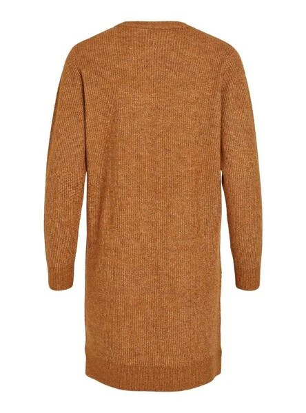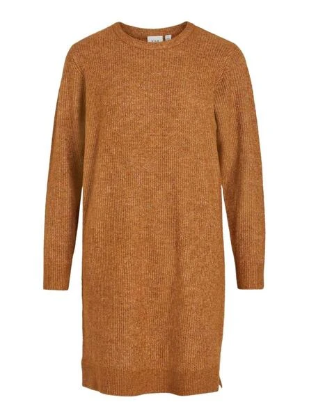 Robe Vila. Modèle Vimathilda. Couleur marron. Col rond élastique. Extrémités élastiques. Tissu tricoté extensible. Manche longue.
