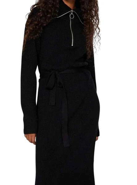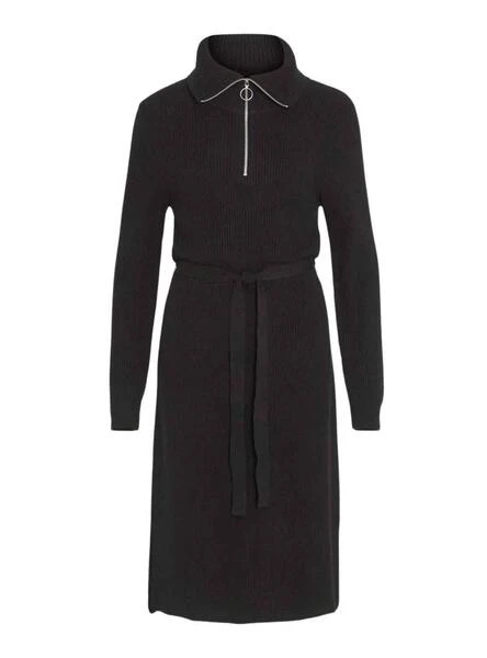 Robe Vila. ModÚle Viril Half Zipper. Couleur noir. Col demi-zippé. Long cou. Avec ceinture. Manche longue. Tricot.